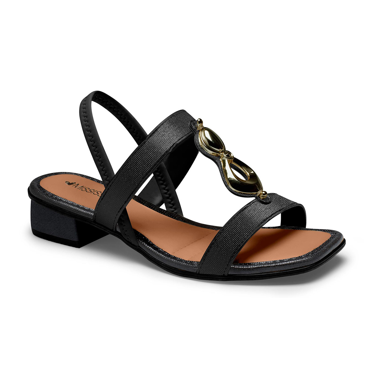 Sandália Feminina Preta Salto Baixo Mississipi Estilosa e Confortável MF893